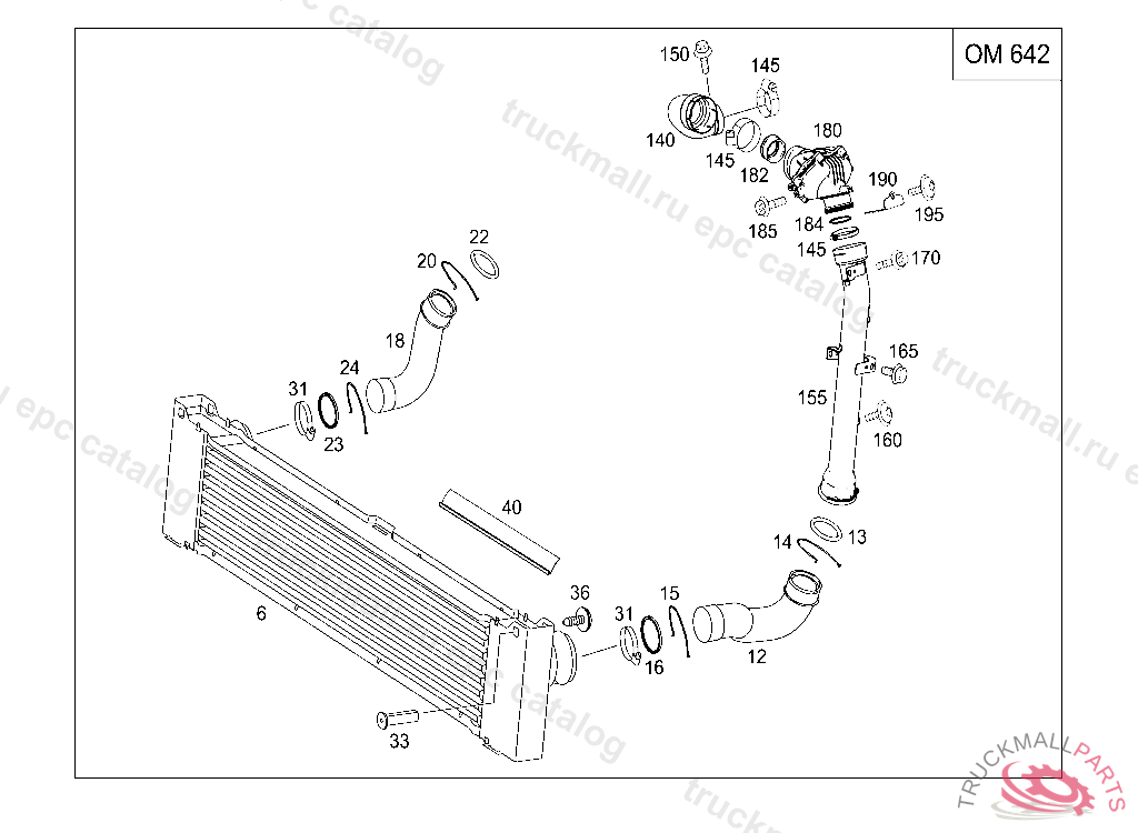 CHARGE AIR GUIDE CHARGE AIR PIPE, FIRST EXHAUST STOCK OF OLD PARTS UP TO IDENT NO. 34836220070522, Replaced By: A6420906137