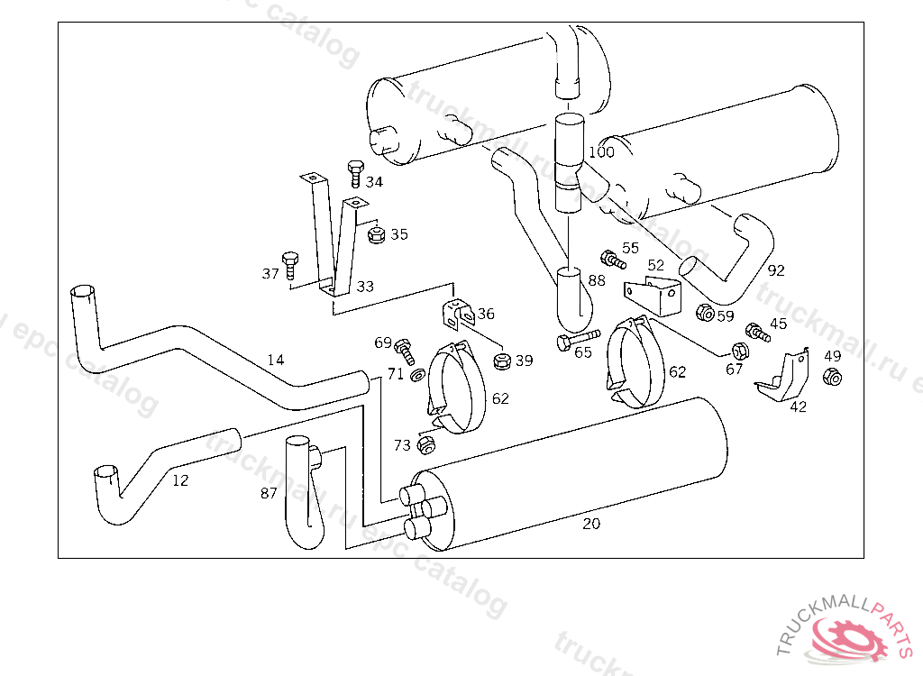 REAR EXHAUST PIPE FROM EXHAUST MUFFLER TO CAB REAR PANEL