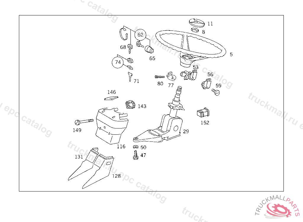 SHELL STEERING COLUMN PANELLING,REAR, USED WITH SHORT MERCEDES-BENZ CAB IINO.7B90 III