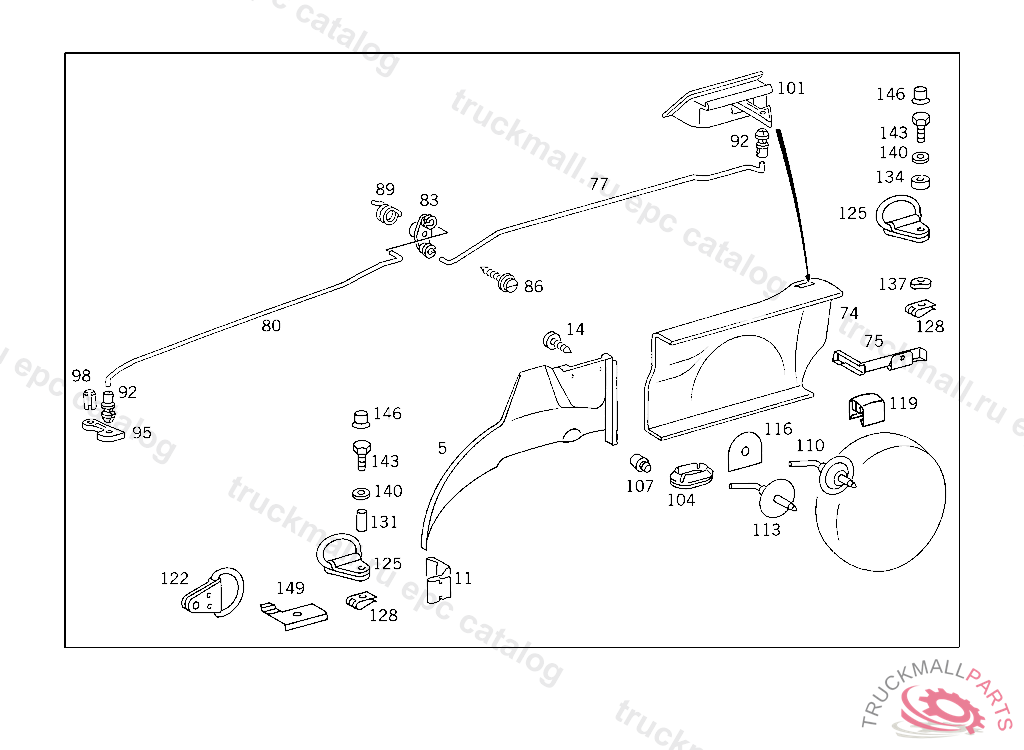 SPACER TUBE BRACKET TO REAR WHEELHOUSE, FROM CHASSIS 123.093 014792 123.183 028940 123.190 030489 123.193 017449 123.280 010007 123.283 021200