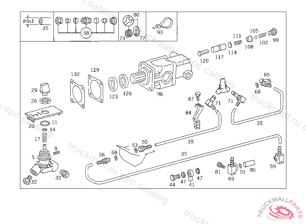 SCREW DELIVERY AND SUCTION LINES TO ENGINE, FRONT M 6X35