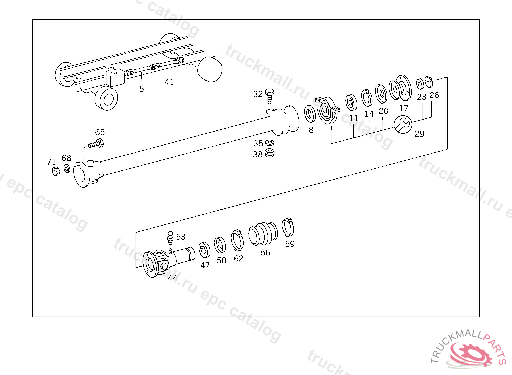 SCREW PROPELLER SHAFT TO TRANSMISSION, 309.9 FROM CHASSIS 522061 309.1 AUTOMATIC TRANSMISSION FROM CHASSIS 523813 309.1 MANUAL TRANSMISSION,WHEELBASE 2950,FROM CHASSIS 521727 309.1 MANUAL TRANSMISSION,WHEELBASE 3500,FROM CHASSIS 520629