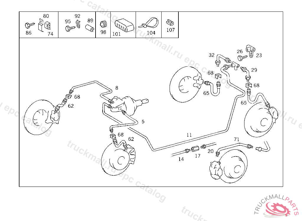 DAMPING STRIP BRAKE LINE TO FIRE WALL, 000 130186 003 066451 007 053318 083 002304 086 001762 093 001874 102,103 113215 105 135079 183 004049 190 005029