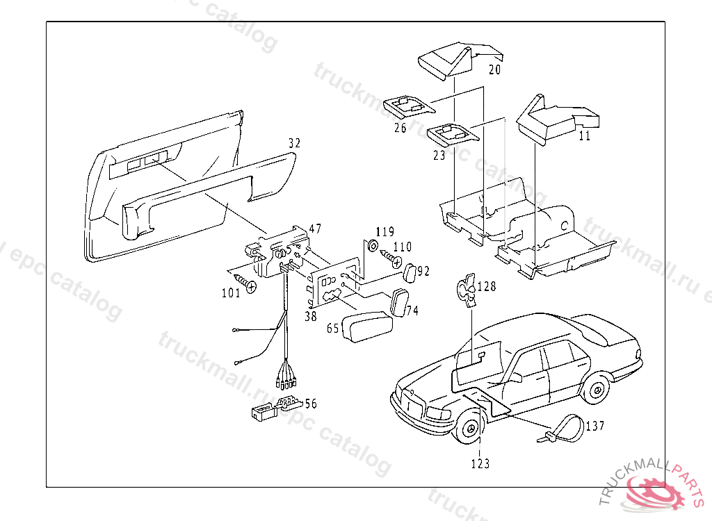 GARNISH MOULDING LEFT ZEBRANO, 126.021 006843 126.022,023 024442 126.032,033 009947 126.036,037 007709 FROM CHASSIS SEE SA 56 395