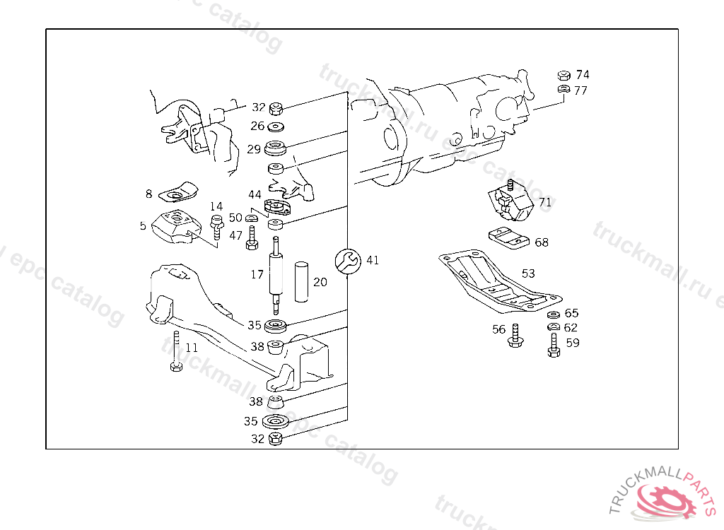 SCREW ENGINE FRONT MOUNTING TO ENGINE SUPPORT, 000 042295 003 019476 102,103 029067 105 038078