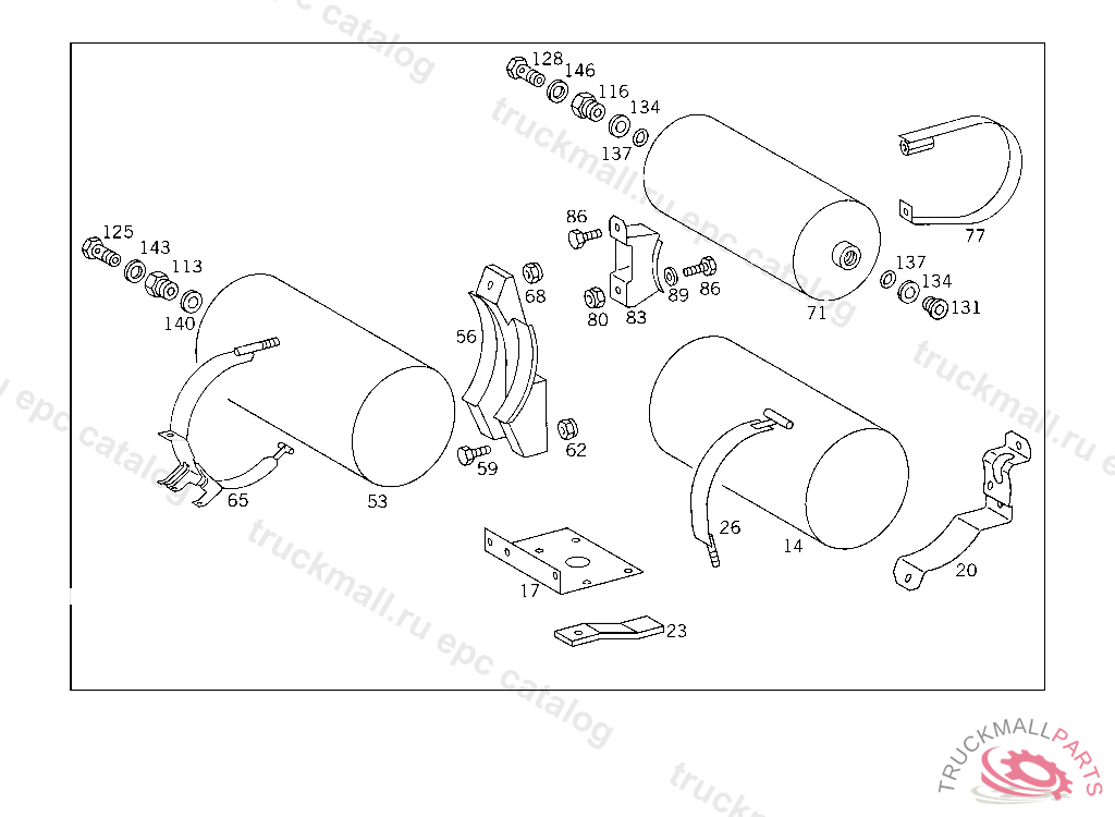COMPRESSED AIR RESERVOIR. RESERVOIR6 L, TO VOSS 232, FOR VEHICLES WITH VOSS 230 CONNECTOR:ADD. MOUNT FITTING "A 004 997 82 72" WITH O-RING "A 000 987 04 46" AND THRUST RING "A 000 997 02 03" TO AIR RESERVOIR