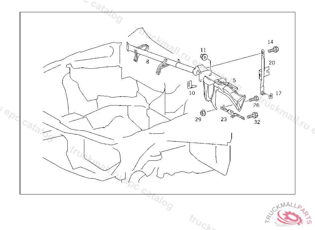 STRUT BETWEEN TUNNEL AND CROSS MEMBER BELOW INSTRUMENT PANEL