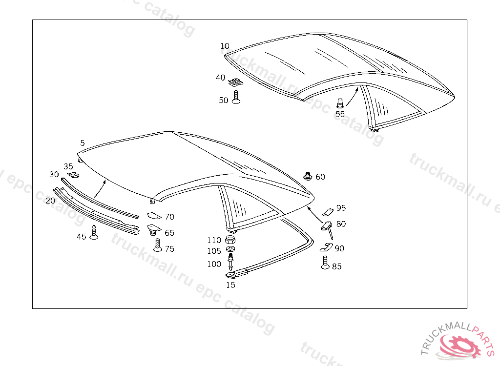 HARDTOP USED WITH STEEL VERSION,F 107603 WHEN ORDERING, PLEASE STATE IDENT (CHASSIS) NO. WHEN ORDERING PLEASE STATE OUTSIDE PAINT,EQUIPMENT CODE,AND SPECIAL EQUIPMENT