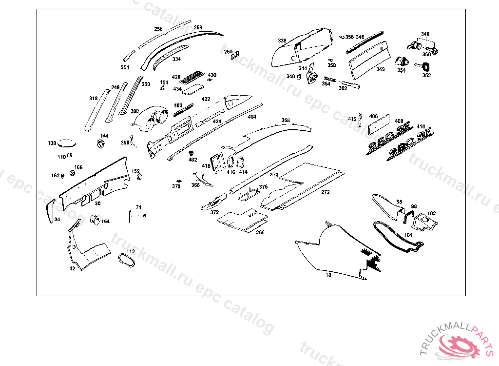 CARDBOARD BELOW INSTRUMENT PANEL, RIGHT, 000,001,004,010,UP TO CHASSIS 130557,100,101,104,110,UP TO CHASSIS 225647 STATE COLOR CODE NR.AND CHASSIS NO.WHEN ORDERING