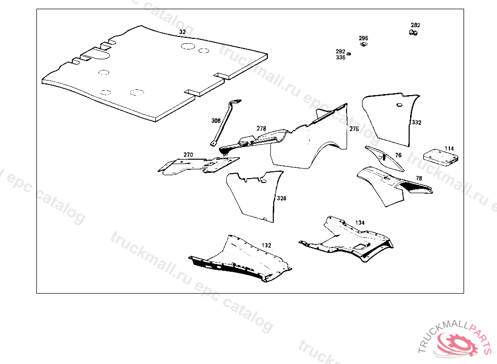 LINING RIGHT REAR FLOOR, STATE COLOR NUMBER WHEN ORDERING