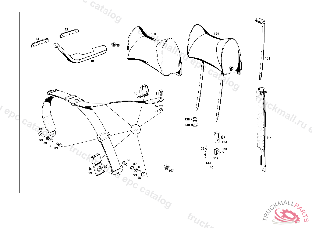 HEADREST COMPLETE,BUT LESS COVER, FROM CHASSIS:SEE FOOTNOTES 044-046
