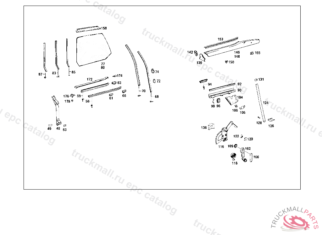 GLASS PANE RIGHT REAR SIDE CRANK OPERATED WINDOW