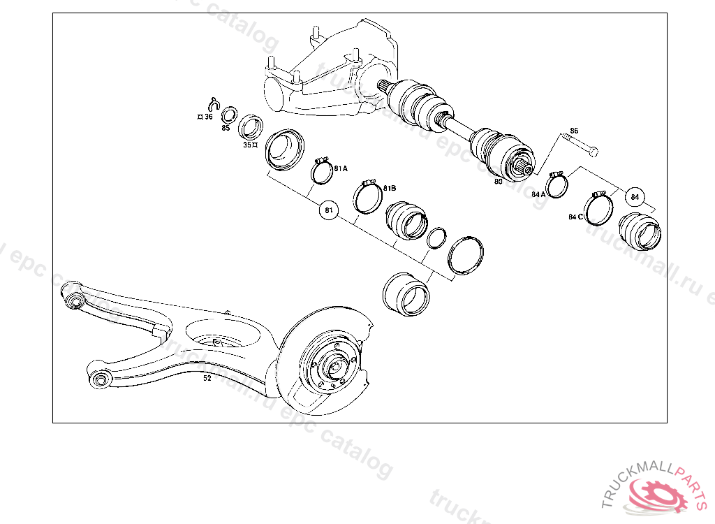 REPAIR KIT AXLE SHAFT SEAL RING, REAR AXLE HOUSING WITH DIFFERENTIAL AND WITH SIDE BEARING CAPS 003 103238 007 087550 086 007105 093 008991 102,103 240182 105 231728 183 015394 190 021956 193 002092 200 027294 280 000776 283 003631