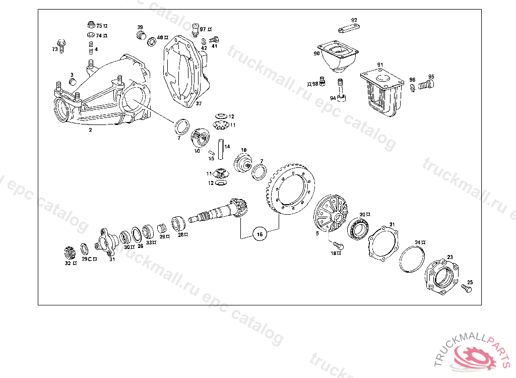 TAPERED ROLLER BEARING RING GEAR BEARING, REAR AXLE HOUSING WITH DIFFERENTIAL AND WITH SIDE BEARING CAPS 003 103238 007 087550 086 007105 093 008991 102,103 240182 105 231728 183 015394 190 021956 193 002092 200 027294 280 000776 283 003631