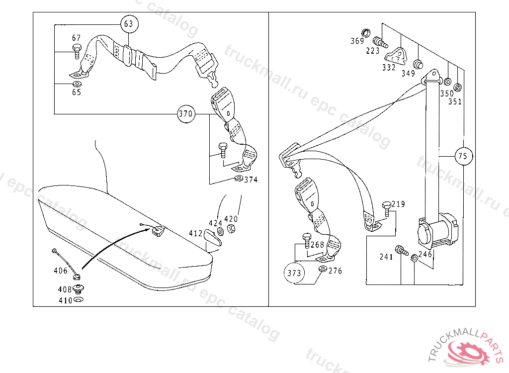 SAFETY BELT RIGHT, UP TO CHASSIS123.083 004324 123.086 003287 123.093 004197 123.183 007371 123.190 011094