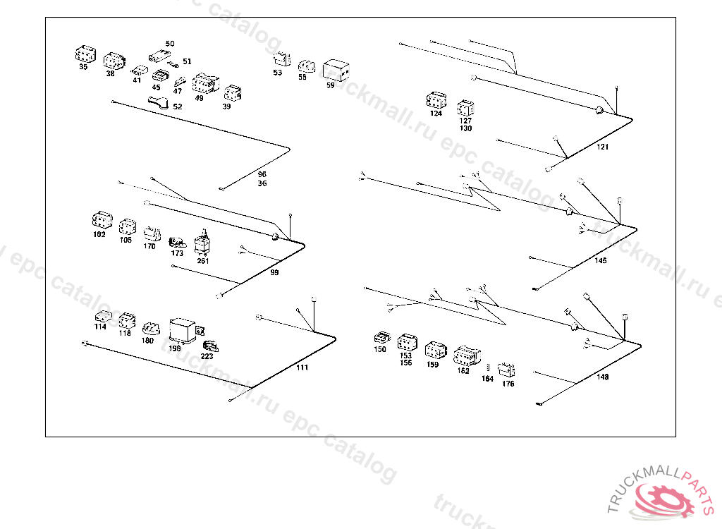 ELECTRIC CABLE , FROM CHASSIS: 107.022 004114, EXCEPT FOR: 004115,004130 107.023 011971, EXCEPT FOR: 011972,011974,011975,011978 107.024 019072, EXCEPT FOR: 019073-019075,019080,019082-019083,019086,019087,019095,019112,019159. 107.042 003213 107.043 013156 107.044 042316, EXCEPT FOR: 042317,042322,042328,042361,042371-042372,042453.