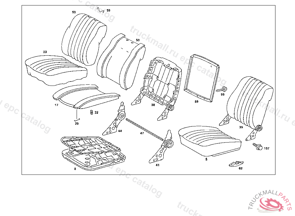 SEAT CUSHION , 116.020 UP TO CHASSIS 049944 ALSO INSTALLED ON 050113,EXCEPT FOR SEE FOOTN.7,116.032,033 UP TO CHASSIS 041787 ALSO INSTALLED ON 041848 EXCEPT FOR SEE FOOTN.8, ANTHRACITE NO. 7081 CODE 901,BLUE NO. 5050 CODE 902,TOBACCO NO. 8224 CODE 903,BAMBOO NO. 8225 CODE 904,PARCHMENT NO. 8226 CODE905,MOSS NO. 6059 CODE 906