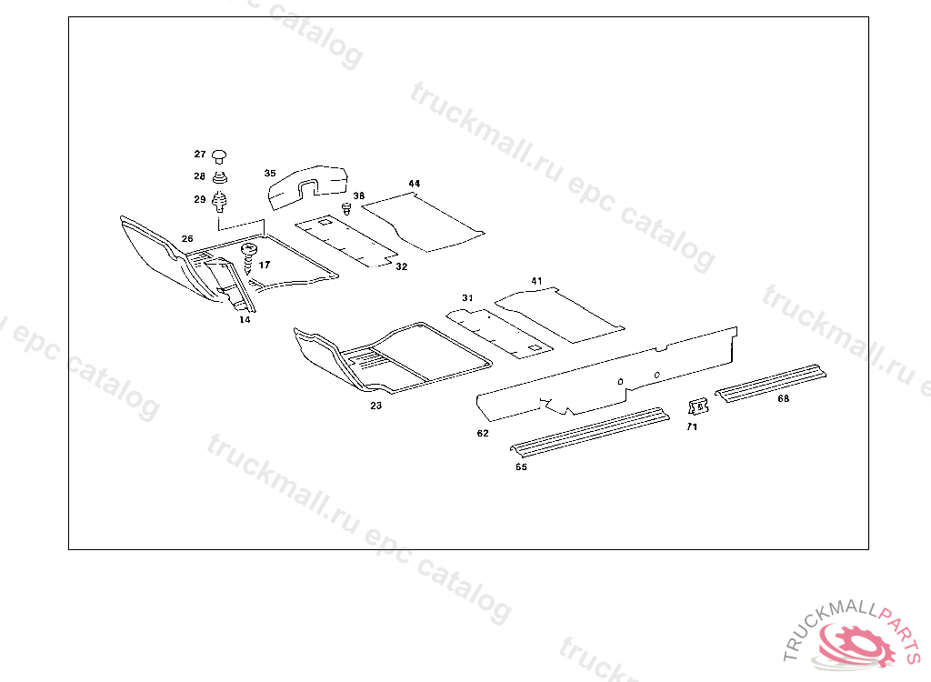 LINING RIGHT,FRONT FLOOR, 023 048287 ALSO INSTALLED ON 048293 033 024637 ALSO INSTALLED ON 024506,024510,024516,024519,024523,024528,024529,024531,024533-024535,024541,024548,024556-024558, 024560,024562,024563,024565,024566,024568-024570,024572-024586,024588-024593,024595-024599,024601- 024636. 123 033639 ALSO INSTALLED ON 033654,033660,033664,033679,033584 130 043625 ALSO INSTALLED ON 043640,043641,043660,043661,043669 NO.9029 INO.5052 INO.8171 INO.8233 INO.8234 INO.6063 I