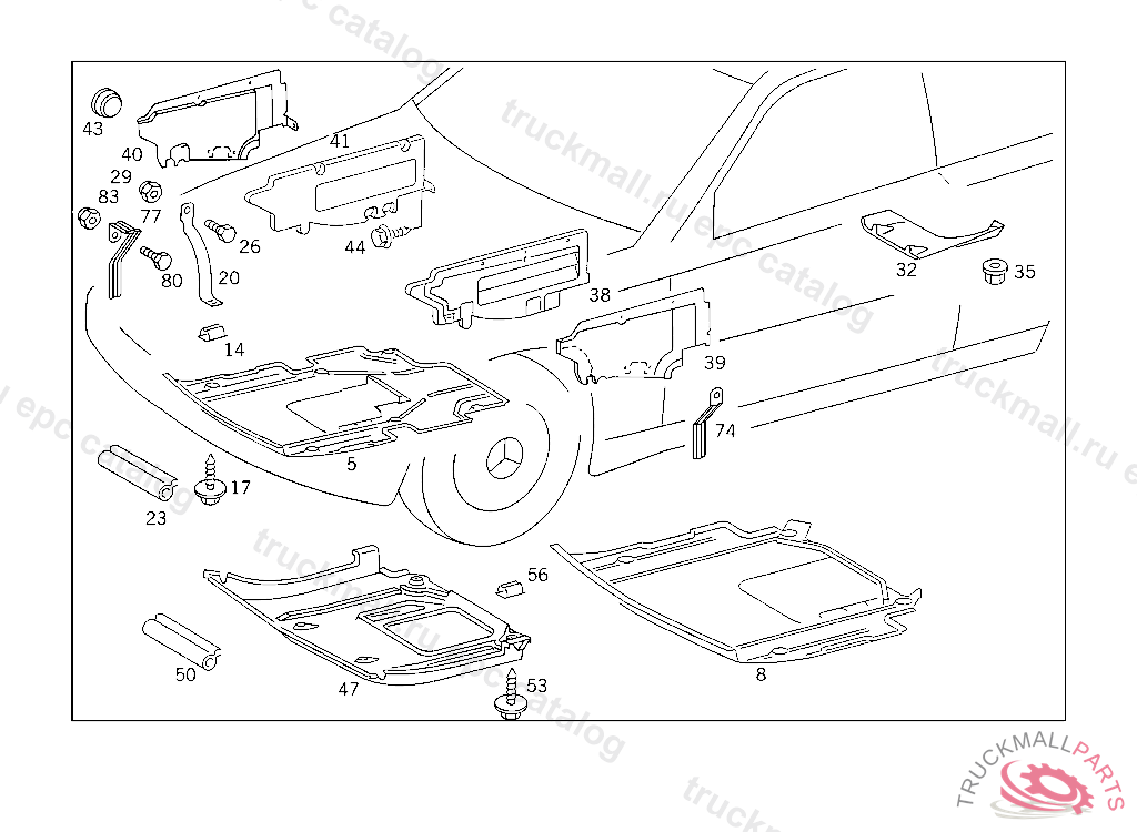PANELLING , FIRST EXHAUST STOCK OF OLD PARTS UP TO IDENT NO. B 143650, Replaced By: A1245241530, +001A1245240047, +001A1245240147