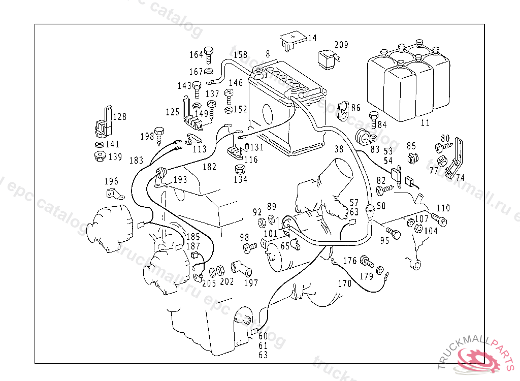 CABLE HARNESS FROM ALTERNATOR TO CABLE CONNECTOR 80 A, UP TO IDENT NO.: C 117897 EXCEPT B 930223,B 997541,C 114541.