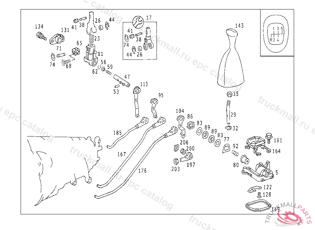 SHIFTING TUBE FOUR-GATE SHIFT, 124.0,124.1 : F 063053 124.2,124.3 : F 079077