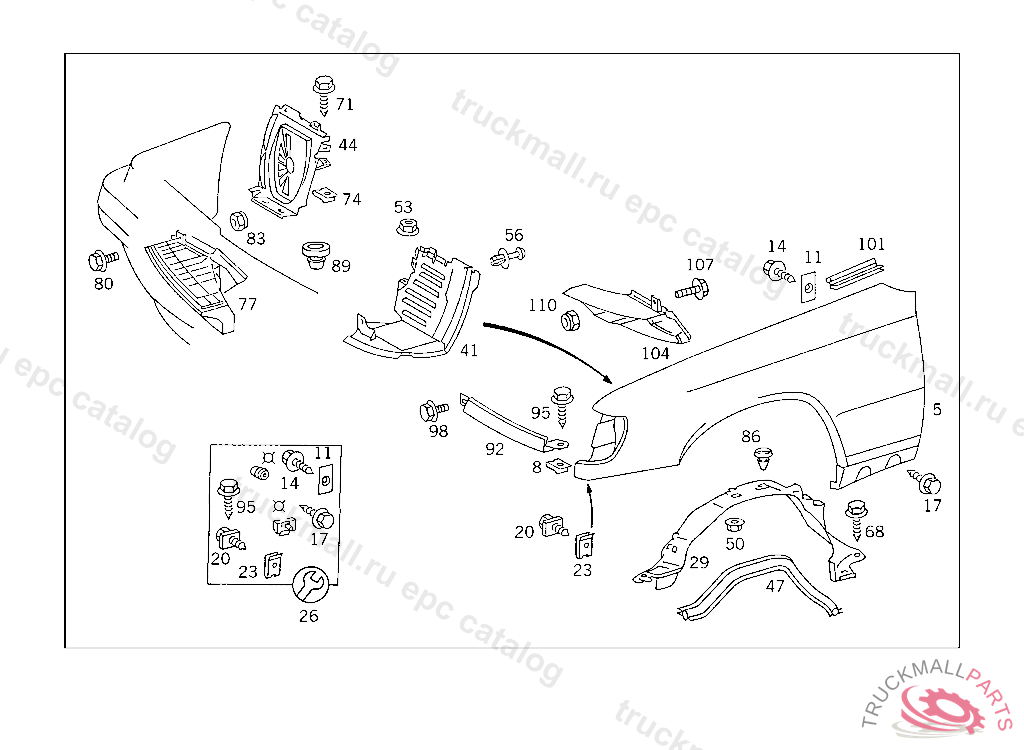 SCREW PARTITION PANEL TO FRONT FENDER, 003 109847 007 098846 086 007461 093 010729 102,103 304111 105 266568 183 019766 190 024811 193 007801 200 082947 280 003503 283 008887