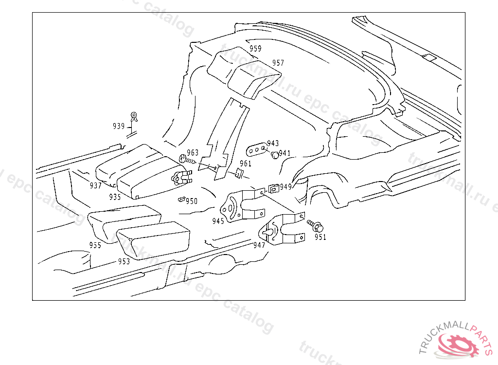 SEAT ADAPTER BETWEEN THE REAR SEAT CUSHIONS, NO.7156I NO.5089I NO.8434I NO.8432I NO.8433I NO.6119 AI NO.3120I NO.7155I I NO.6133 BI