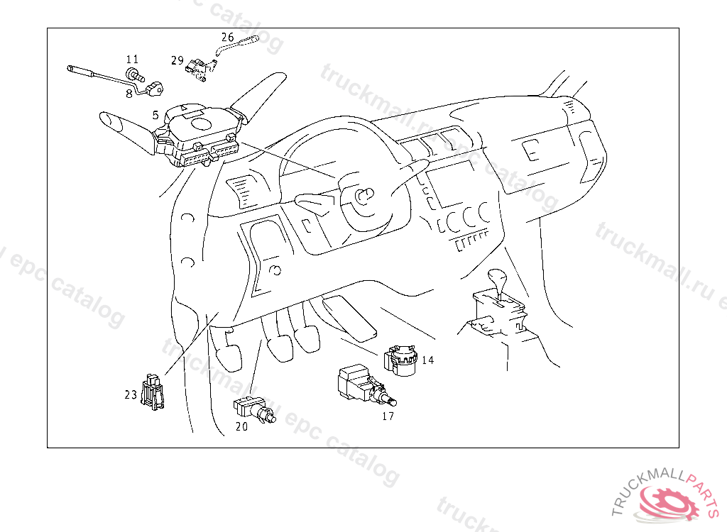 LEVER LANGUAGE CONTROL SYSTEM, A 289560 X 754620 EXCEPT CODE 801 ALSO INSTALLED IN VEHICLE TO A 289559, X 771303 WITH CODE 802