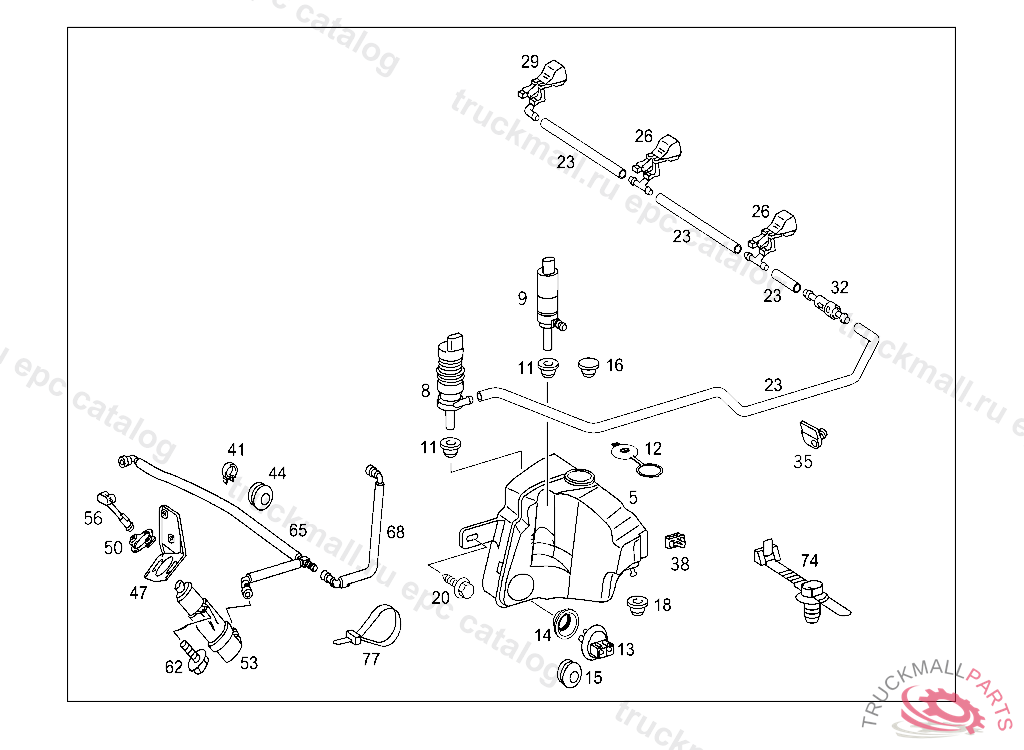 WATER CONTAINER PANE WASHER, ORDER ADDITIONALLY: 1X A 210 987 00 45, 1X A110 987 09 44 UP TO END OF MODEL YEAR 1999
