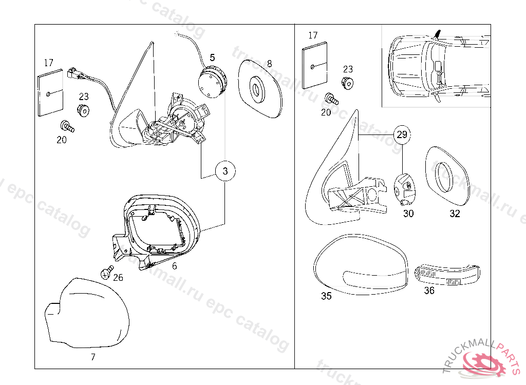 MIRROR WITHOUT CASING AND WITHOUT MIRROR GLASS,FOLDING,MEMORY,RIGHT, A 289560 X 754620 EXCEPT CODE 801 ALSO INSTALLED IN VEHICLE TO A 289559, X 754619 WITH CODE 802