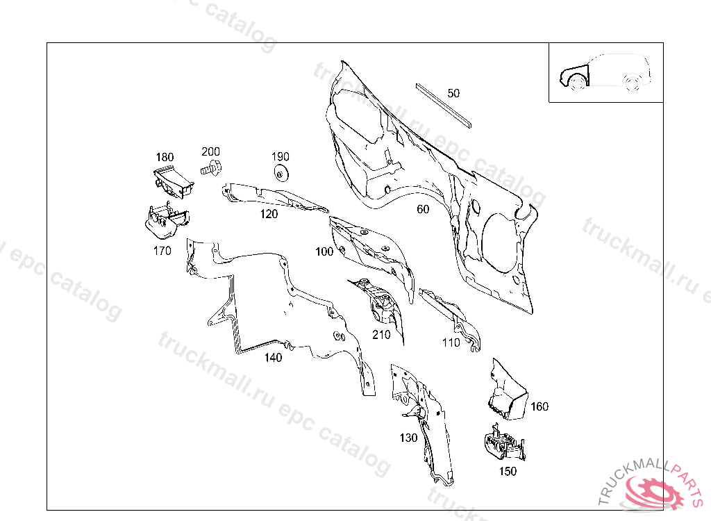 SHIELDING FIRE WALL, A 56638320091030 FIRST EXHAUST STOCK OF OLD PARTS UP TO IDENT NO. A 62920820100624, Replaced By: A1646825171