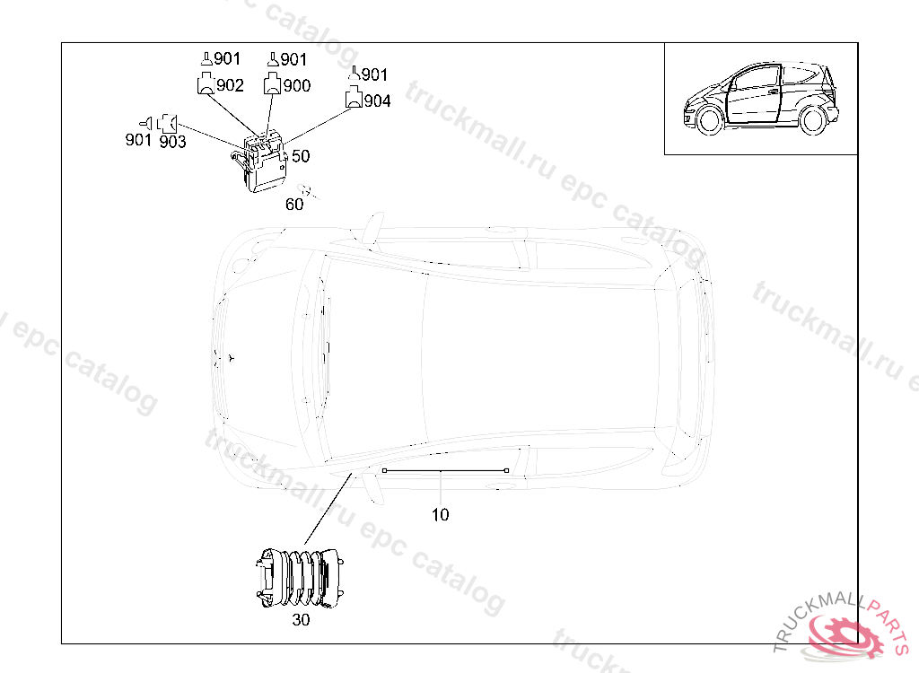 PIN BUSHING HOUSING DOOR CONTROL UNIT AT REAR DOOR, LEFT AND RIGHT 8-PIN MQS,N69/3 N69/4