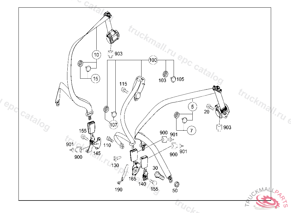 SEAT BELT REAR SEAT BENCH,CENTRAL, J 19144420050706