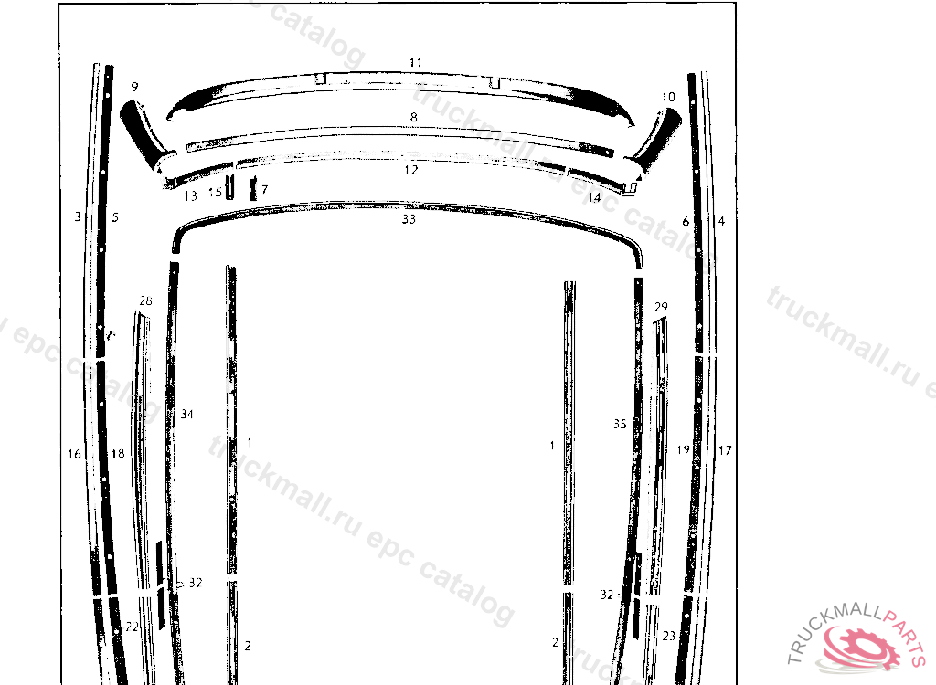ABDICHTUNGSGUMMI LINKS 790-MM LANG AN VERDECKRAHMEN SEITLICH VORN