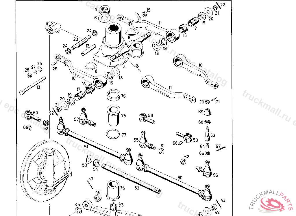TELLER. SEAT FOR SUPPORT OF FRONT AXLE AT SUPPORTING BODY, FRONT AXLE