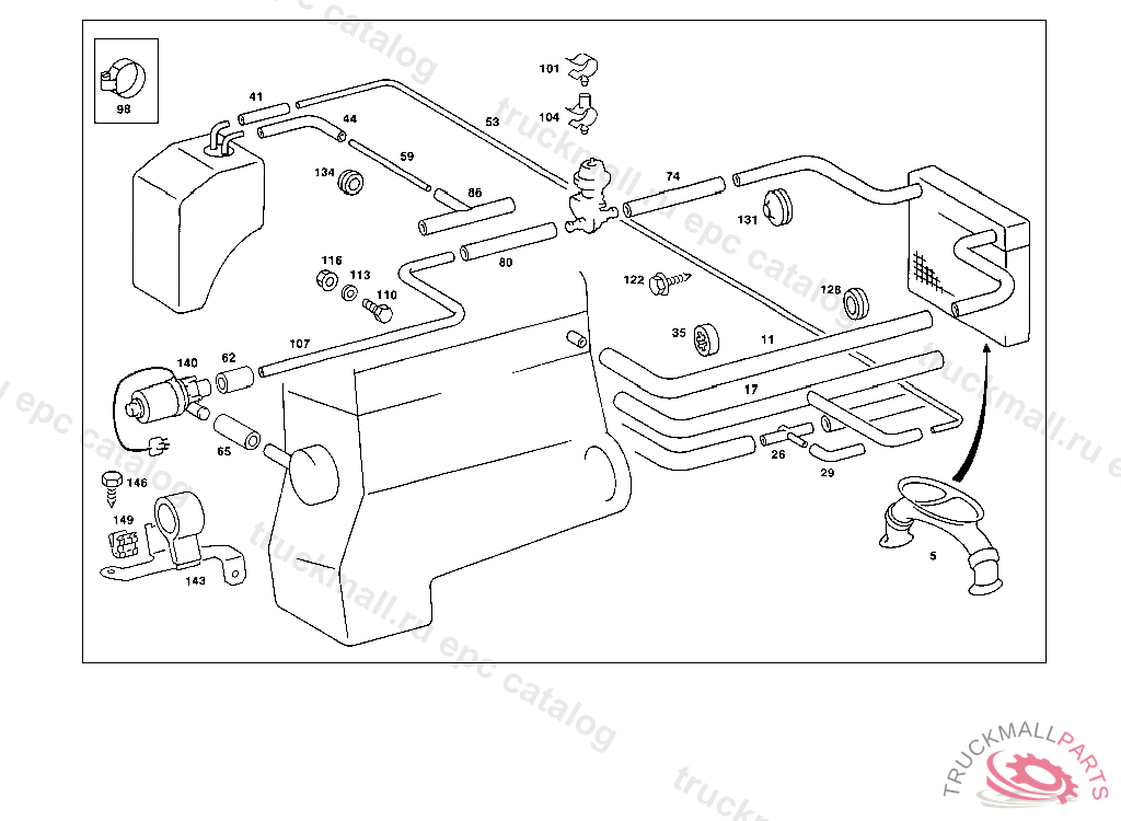 PIPE LINE FROM ENGINE TO HEAT EXCHANGER, ONLY USED W/HEATED WINDSHIELD WASHER, ONLY APPLICABLE TO ENGINE WITH RESIDUAL HEAT UTILIZATION