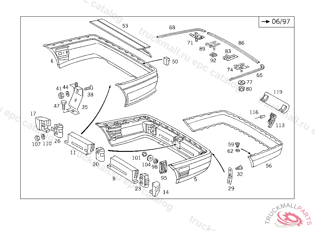 REAR BUMPER FACE BAR LESS PROTECTIVE STRIP ELEGANCE, TO BE REWORKED WHEN USED WITH HITCHING MECHANISM SPECIAL VERSION TO BE PAINTED PRIOR TO INSTALLATION FOR COLOR NUMBERS AND PAINT CODES USED FOR OUTSIDE PARTS,SEE FOOTNOTE 902 F 619720 EXCEPT CODE 808 ALSO INSTALLED IN VEHICLE FROM F 619721 WITH CODE 807