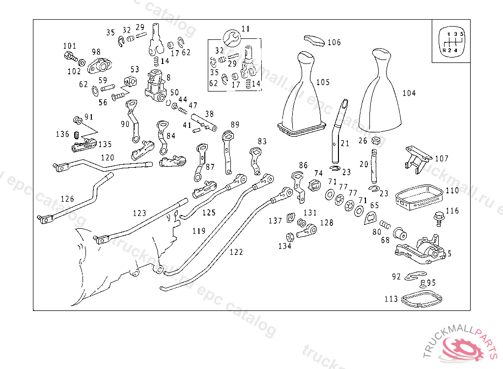 SHIFTING TUBE FOUR-GATE SHIFT, 124.0,124.1 : F 063053 124.2,124.3 : F 079077