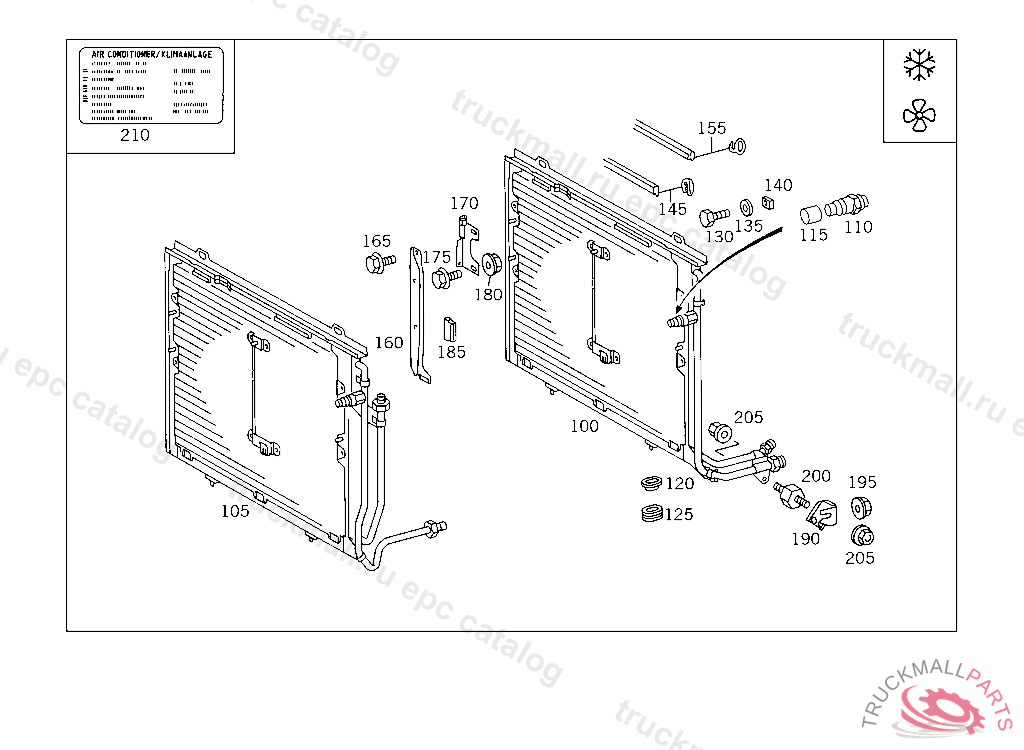 CONDENSER , ONLY WHEN ORIGINAL MERCEDES BENZ RETROFIT AIR CONDITIONING UNIT IS INSTALLED A 394035 J 036478 EXCEPT CODE 808 ALSO INSTALLED IN VEHICLE FROM A 394036 WITH CODE 807