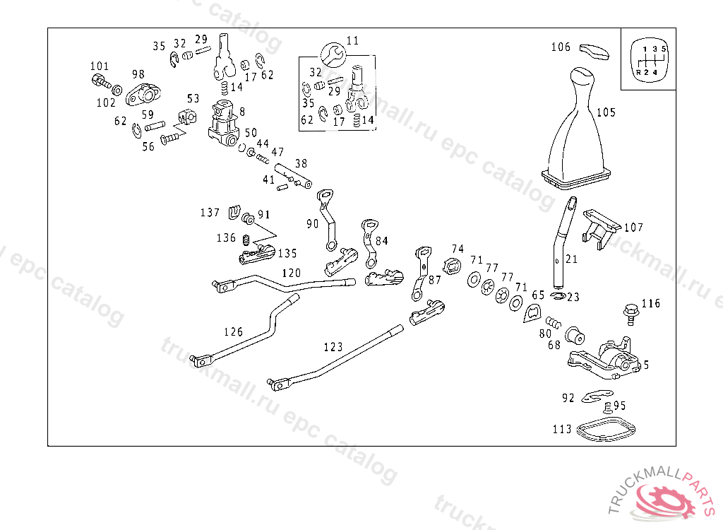 SHIFTING TUBE FOUR-GATE SHIFT, 124.0,124.1 : F 063053 124.2,124.3 : F 079077