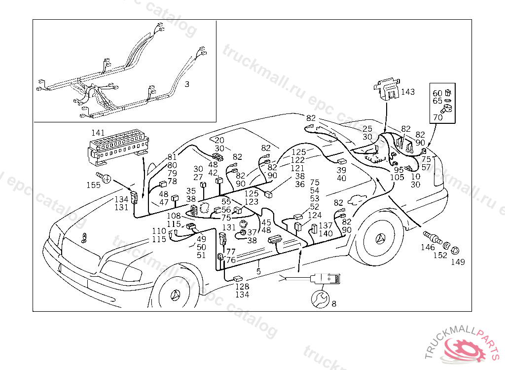 CABLE HARNESS , A 065934 F 049224 A 218852 EXCEPT FOR A 103237 - A 218851 WITH CODE 030 F 190065 EXCEPT FOR F 159752 - F 190064 WITH CODE 030 AS OF IDENT-NO.: FOR HEADLAMP WIRING HARNESS REFER TO TU 54/121, WITH AIR CONDITIONER REFER TO TU 54/485 ALSO INSTALLED ON A 219847 ONLY FOR RADIOS CLASSIC, SPECIAL AND EXQUISIT FOR VEHICLES WITHOUT INFRARED LOCKING SYSTEM,SEE PARTS SCOPE 82/540