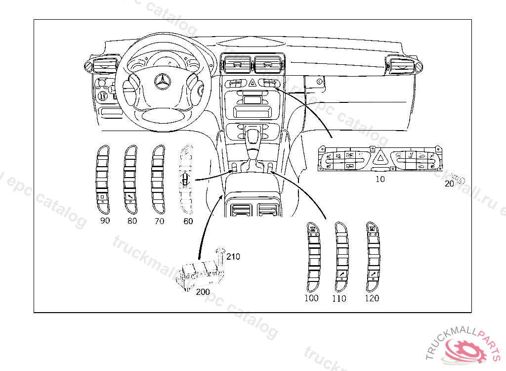 SWITCH FRONT HEATED SEAT, PARKTRONIC SYS. (PTS), REAR WIN. BLIND, E 01872520030630804 A 55589720030630804 F 45737520031014804 R 13114520031014804 7167QFT203A1010 DEEP GREY, Replaced By: A2038701210