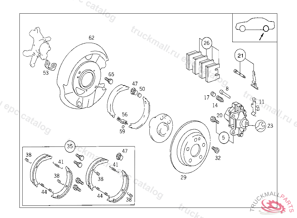 BRAKE SHOE RANGE OF DELIVERY, WHEN SELLING BRAKE LININGS TO END USERS/DESK BUYERS THE A 203 005 25 99 IS TO BE HANDED OVER FREE OF CHARGE