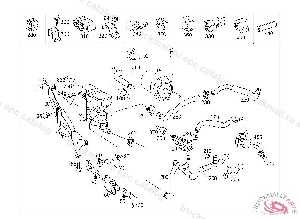 FAN SHROUD HEATING, FIRST EXHAUST STOCK OF OLD PARTS UP TO IDENT NO. F 26399920080731, Replaced By: A2035000455