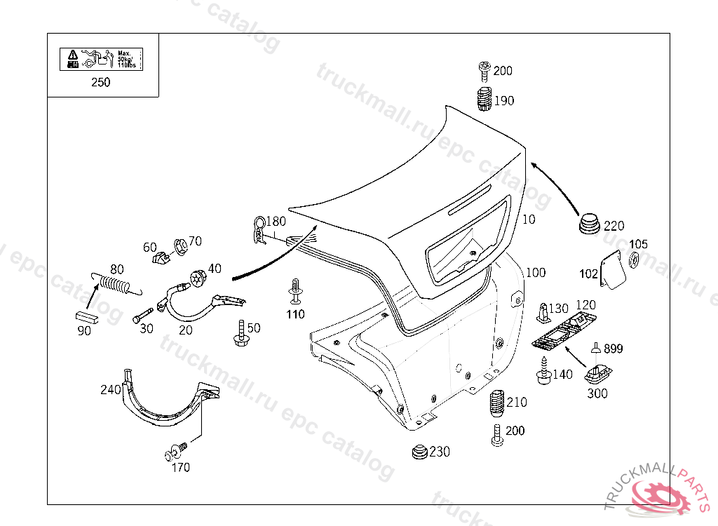 PANELING REAR LID,WITH WARNING TRIANGLE FIXTURE, F 14952320041031 9F08QFT209L9013 SINGLE TONE BLACK, Replaced By: A2096900541