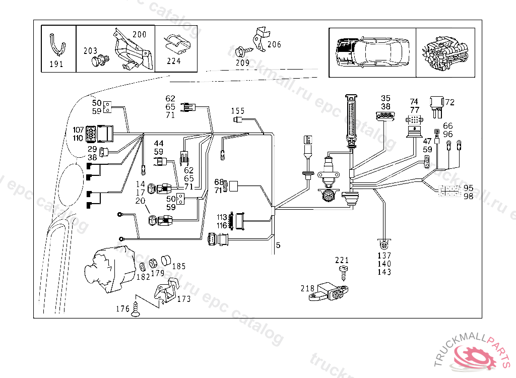 CABLE HARNESS ENGINE CABLE HARNESS,BODY MOUNTED, A 698507 X 012425 EXCEPT CODE 809 ALSO INSTALLED IN VEHICLE FROM A 698508, X 012426 WITH CODE 808