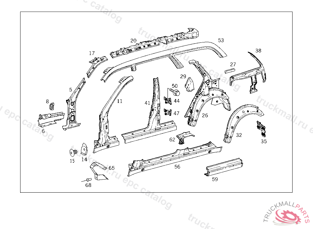 WHEELHOUSE , FIRST EXHAUST STOCK OF OLD PARTS UP TO IDENT NO.A 779798 / X 016162, Replaced By: A2106371076
