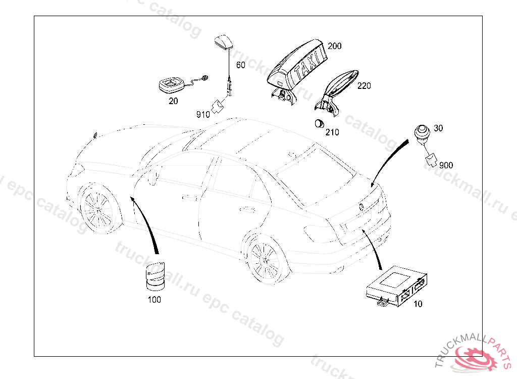 MOUNT TAXI ROOF SIGN, FIRST EXHAUST STOCK OF OLD PARTS UP TO IDENT NO. J 20130107, Replaced By: A2128201014