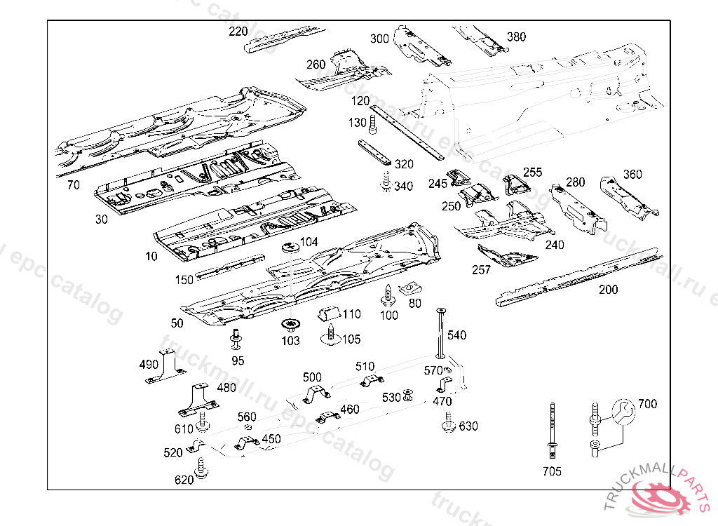 COVER BELOW MAIN FLOOR,RIGHT, FIRST EXHAUST STOCK OF OLD PARTS UP TO IDENT NO. A 51981720110908 L 02220620110930 V 00178220110930, Replaced By: A2126804708