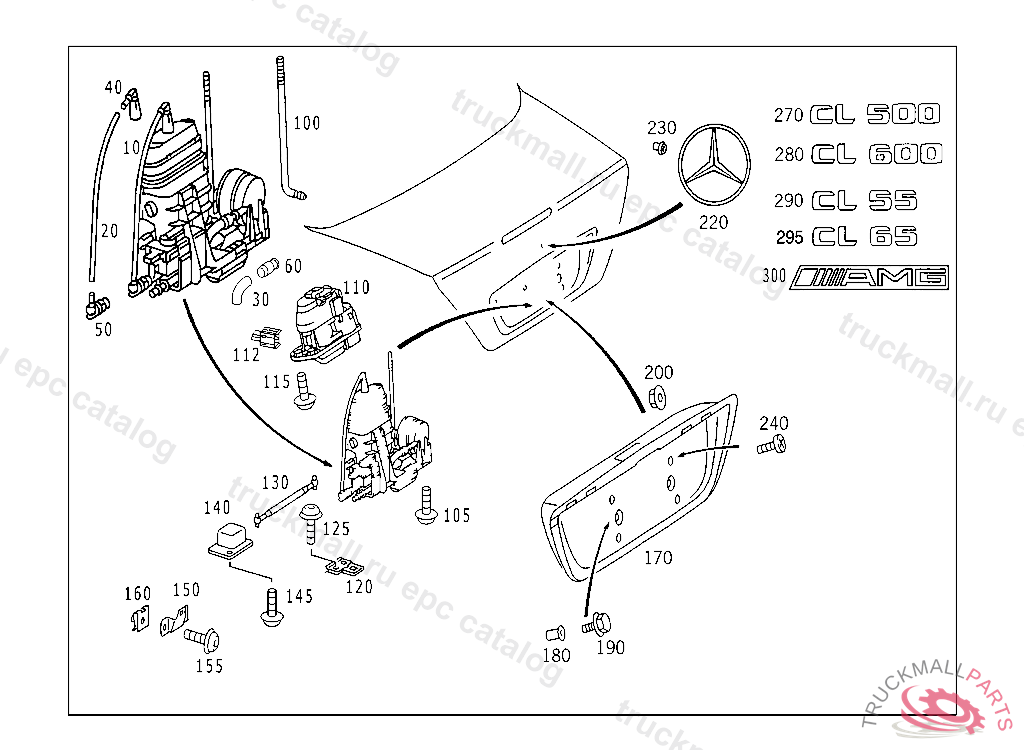CATCH RIGHT, WITH TRUNK LID AUXILIARY LOCK, Replaced By: A2207501284